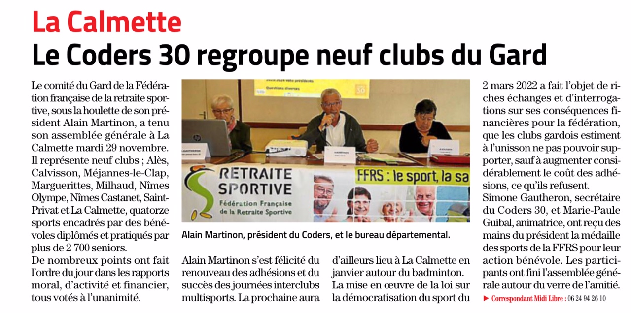 Assemblée Générale du CODERS 30